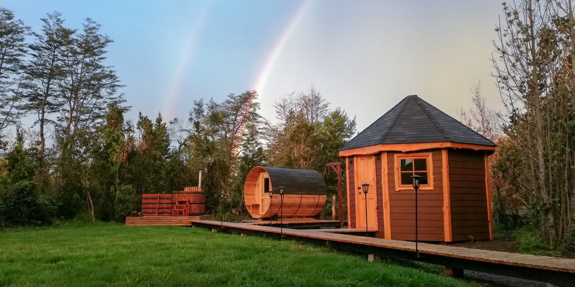 Nuestro lodge cuenta con un espacio común interior que permite disfrutar de una hermosa vista a través de sus altos ventanales y la calefacción de una chimenea a leña en el invierno. En el exterior, cuenta con una terraza con vista al volcán Osorno y Calbuco, y áreas verdes para que puedas disfrutar en todo momento.